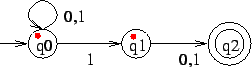 Now after reading 0 the automaton has still got two markers, one of them in an accepting state: